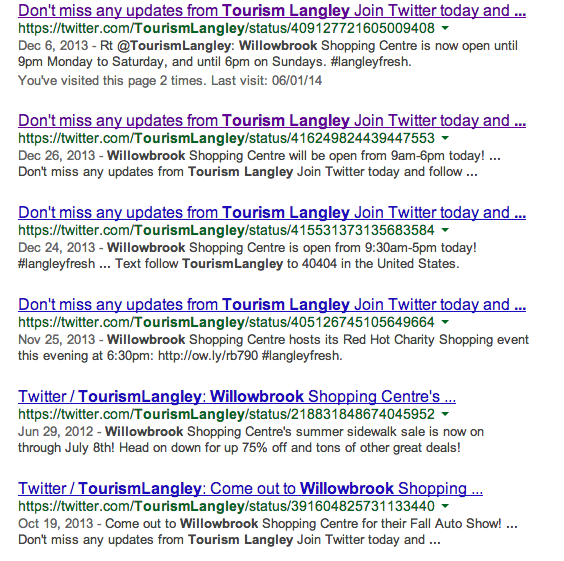Tourism Langley is very sad it doesn’t have the city’s largest mall to interact with on Twitter.