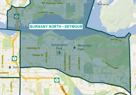 Burnaby North-Seymour: Much maligned by NDP politicians, this new riding takes the eastern half of North Vancouver, the northern half of Burnaby, and smushes them together.