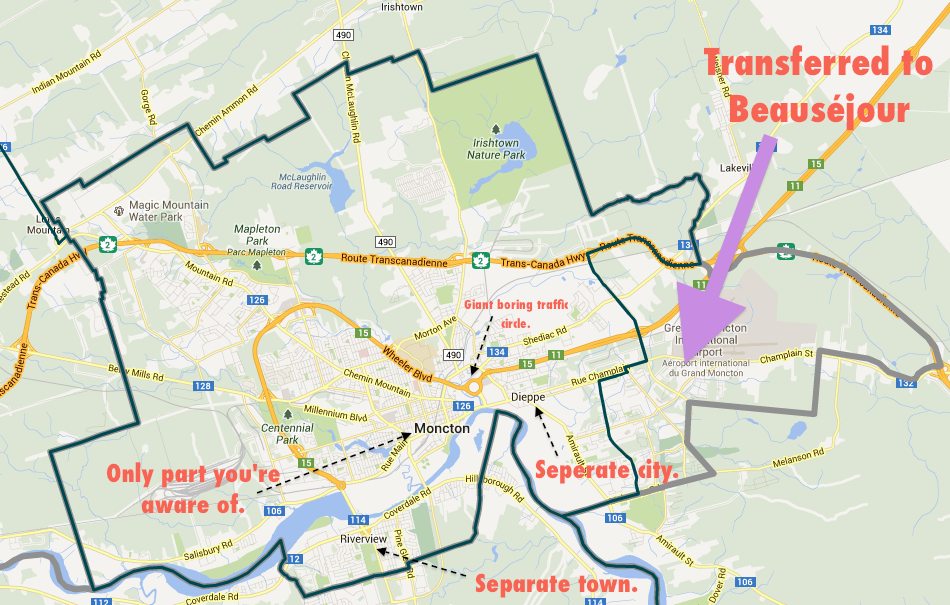 Geographical changes: All 10 ridings have some changes in boundaries, but they’re fairly minor – with once exception. Most of Dieppe (which is the eastern, more Francophone suburb-city of Moncton) was transferred from Moncton-Riverview-Dippe to Beauséjour, both to even out the population levels and to strengthen the Francophone ties between Dieppe and the communities on the eastern shore. Beauséjour also loses some farmland in the northeast to Miramichi.