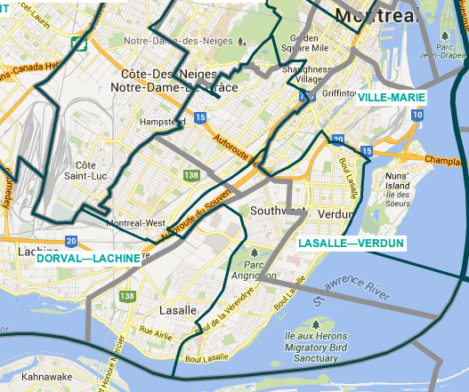 In Montreal, LaSalle, Verdun, and Southwest Montreal had saw major changes to their areas, and the south shore suburbs had a fair bit of tinkering, particularly the Longueuil region.