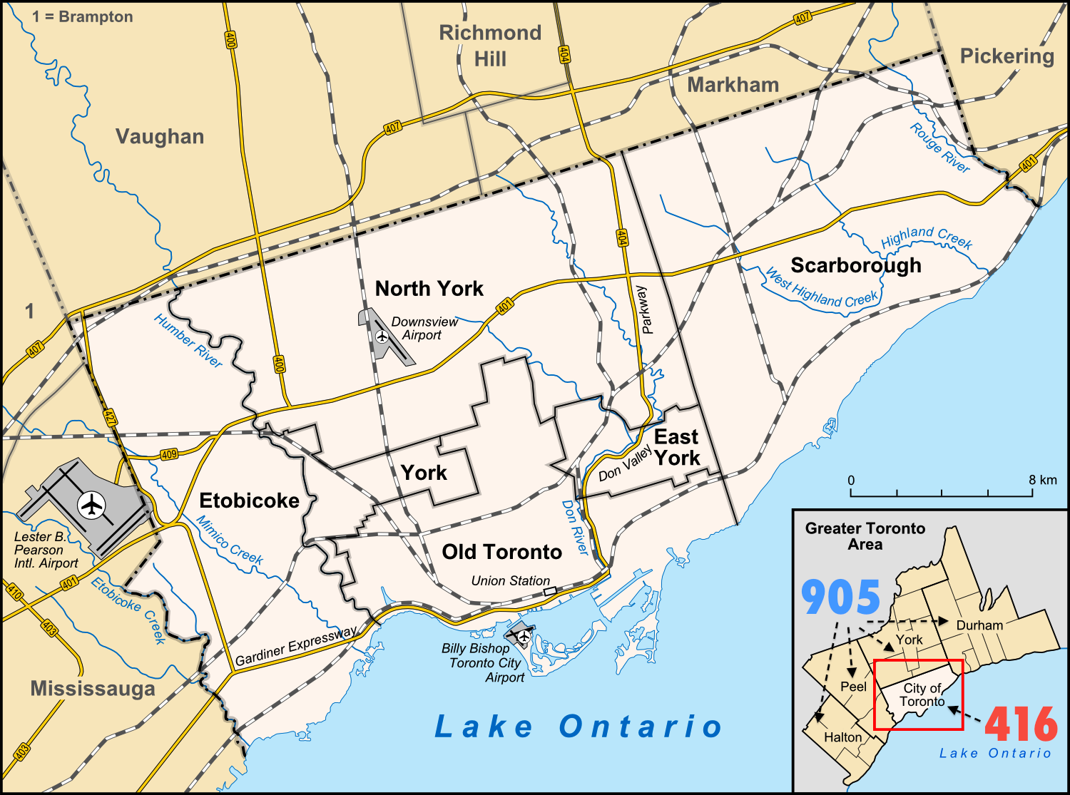 So Toronto first, which has several districts that were once cities, before tackling the surrounding regional municipalities, which each have several cities that were once townships.