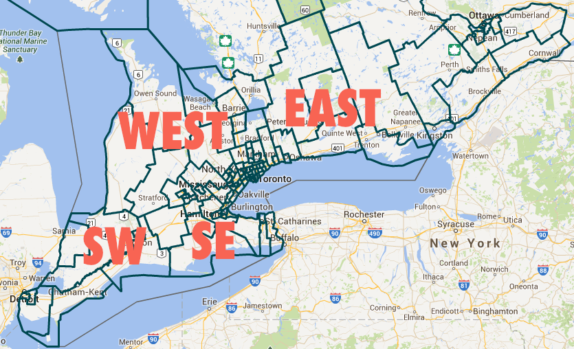 (SIDENOTE: The rest of Southern Ontario can be divided any number of ways for political purposes. This is how we’re doing it here.)