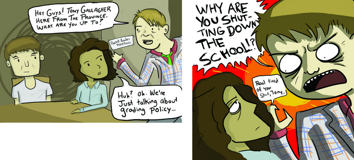 (That’s not to say speaking out didn’t happen. In 2009, self-described activist Blake Frederick was elected AMS President. His tenure included plenty of criticism of the university, and culminated with a human rights complaint to the United Nations. That ended with a unanimous request for his resignation, a spectacularly silly legal battle, a campus-wide referendum…and there hasn’t been anyone close to his position on the political spectrum elected since. You may draw your own inferences.)
