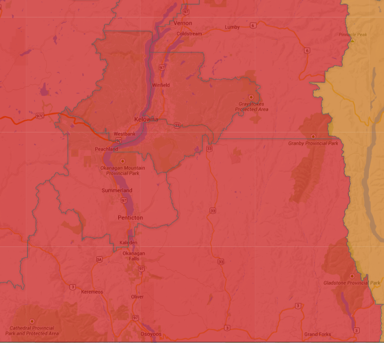 There is a scenario in which a Liberal-friendly area loses a seat, and that’s in the southern Okanagan. Boundary-Similkameen is 30.4% under the electoral quotient. To the north is Penticton, which is just 4.33% above the quotient. Smush the two together, let Kootenay West take the towns of Grand Forks and Greenwood, give Westside-Kelowna a bit of Peachland, and you can see a way where Liberal-friendly Okanagan goes from seven seats to six.