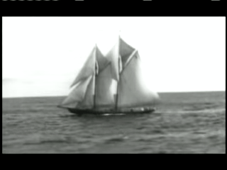The plot: We’re off the coast of Massachusetts, watching (and listening) to a big boat race between the Bluenose and some U.S. boat. We know this because the announcer on board says “The American ship is just trailing the Bluenose!”