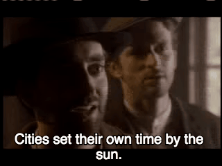 That’s Sanford Fleming! He then goes to a work cabin, where he grouses about the fact that “between Halifax and Toronto, there are five separate time zones.” He says there must be a better way, but a flunkie is skeptical.